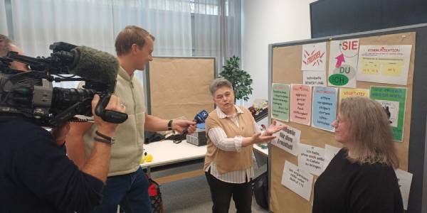 Am Freitag bekam die Gruppe Besuch vom Fernsehen: ARD-Reporter Martin Rotter aus Tübingen war auf das Thema und Patricia Wickerts Angebote aufmerksam geworden, auf der Suche nach Themen, die in die ARD-Nachmittagssendung „Brisant“ und zur Jahreszeit passen. Mit einem Kameramann begleitete er den Kurs und führte Interviews mit Teilnehmern und Organisatoren. Der Beitrag wird in dieser Woche am Montag oder Dienstag in „Brisant“ ausgestrahlt, später auch im Dritten Programm des SWR.